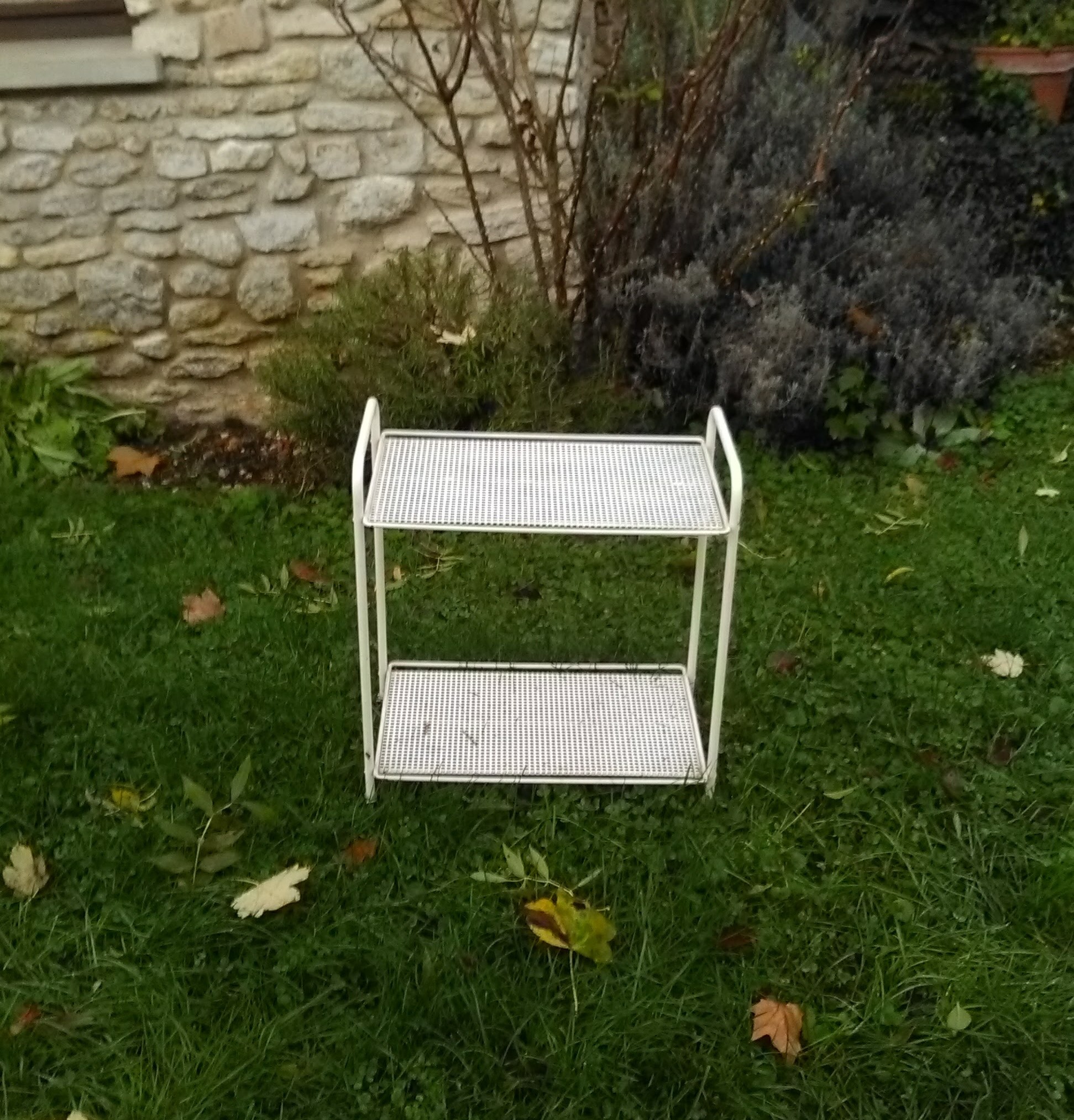 une petite trace de rouille sur l’étagère du bas à gauche, le reste est en bon état.